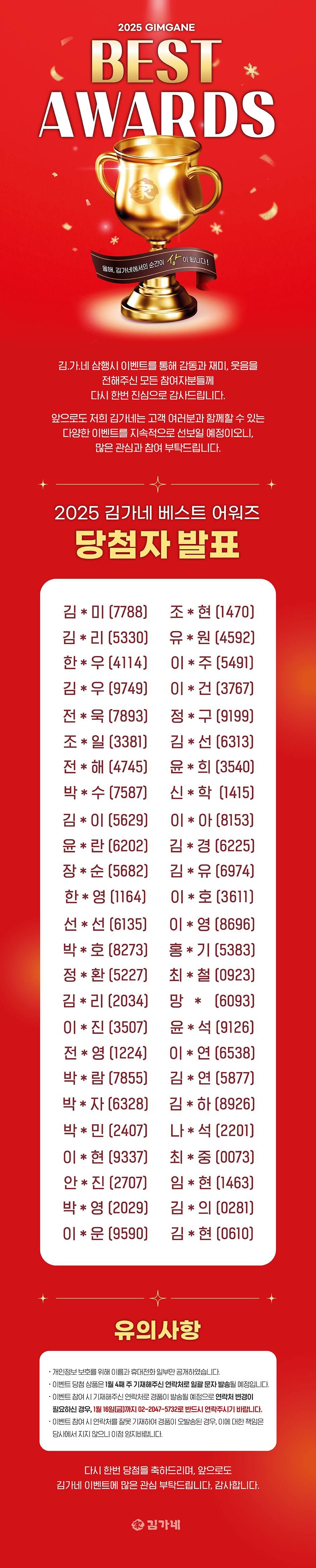 김가네, 겨울 시즌 이벤트 <2025 김가네 베스트 어워즈> 당첨자 발표